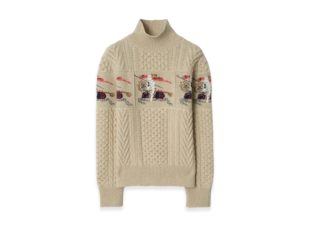 Burberry Women's EKD Aran Knit Wool Sweater "Beige Melange"
