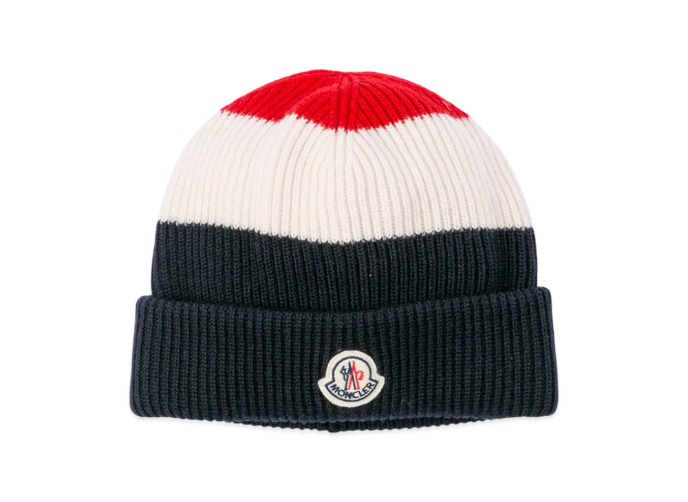 MONCLER Monogram Jacquard Cotton Beanie "Blue Red"