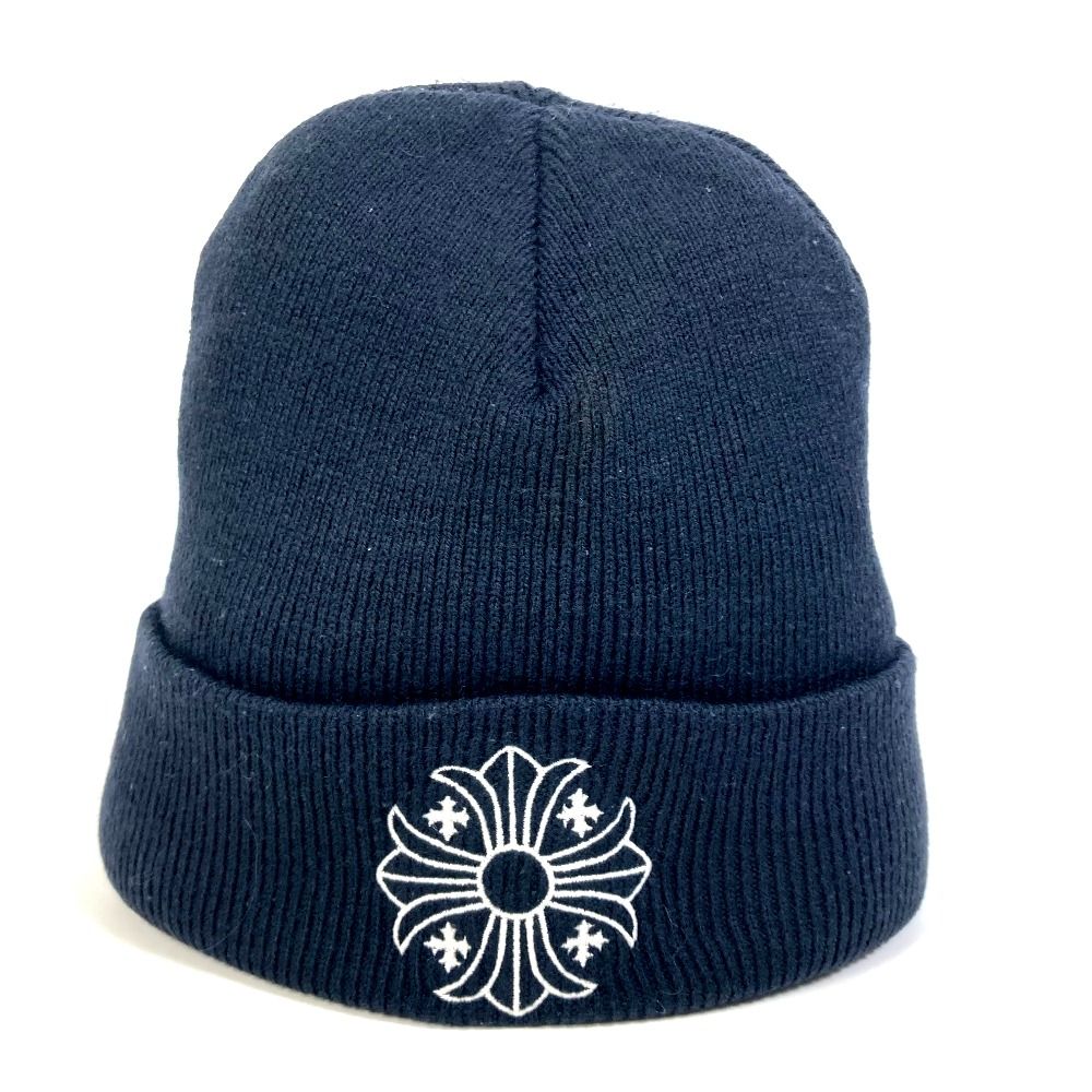 クロムハーツ ビーニー/ロゴ CHクロス ニット帽 コットン ダークネイビー