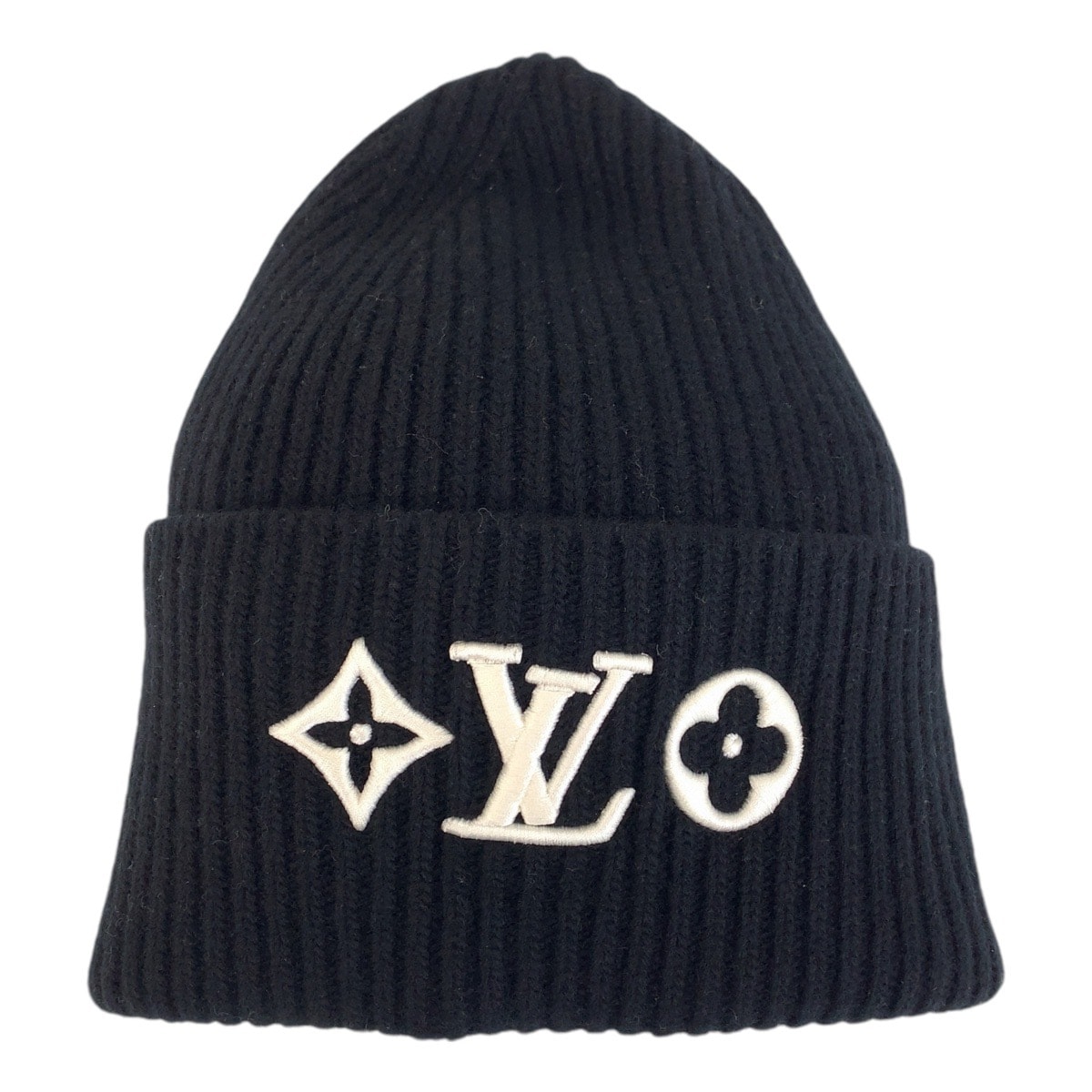超美品 LOUIS VUITTON ルイヴィトン モノグラム ビーニー LVヘッドライン ブラック ホワイト ウール ニットキャップ ビーニー 男女兼用 504528 【中古】