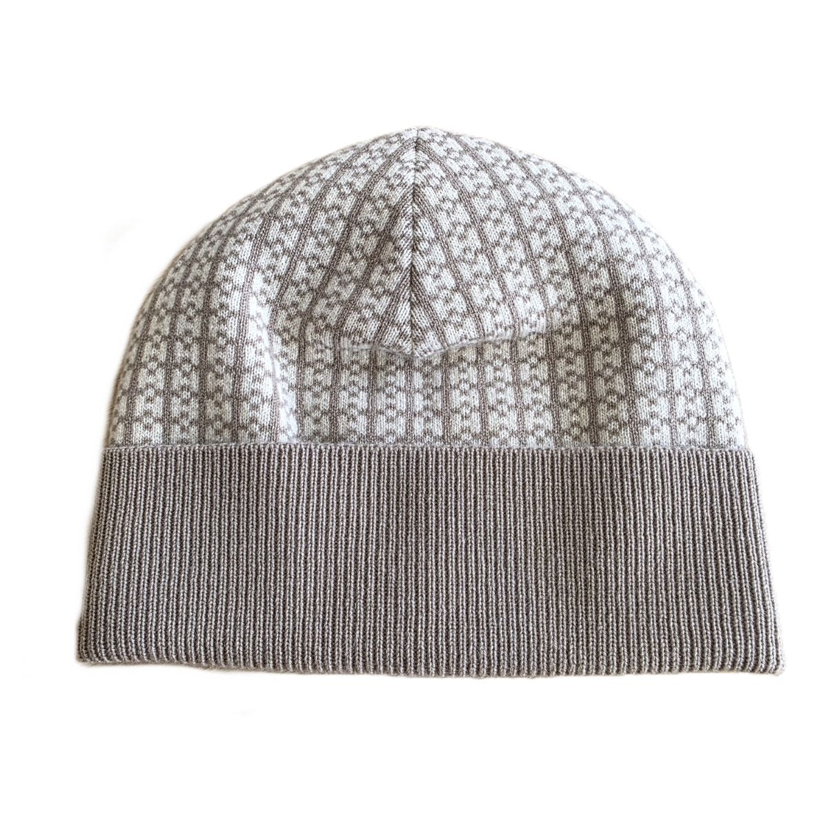 HERMES エルメス 23AW《ホープ》 Bonnet Hope カシミヤ100% Hロゴ 総柄 ニット帽 ビーニー ニットキャップ S カシミヤ ベージュ レディース【中古】