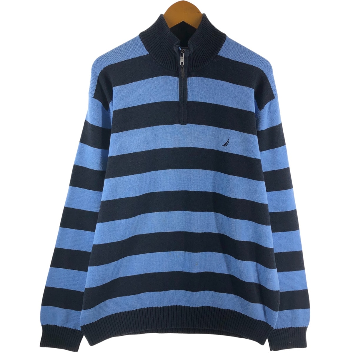 古着 ノーティカ NAUTICA ボーダー柄 コットンニットハーフジップセーター メンズL相当/eaa463604