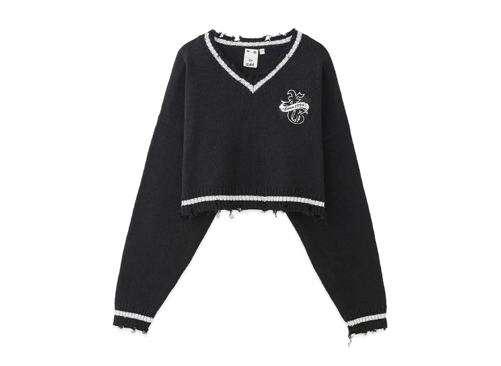 X-Girl Emblem V-Neck Knit Top "Black"
