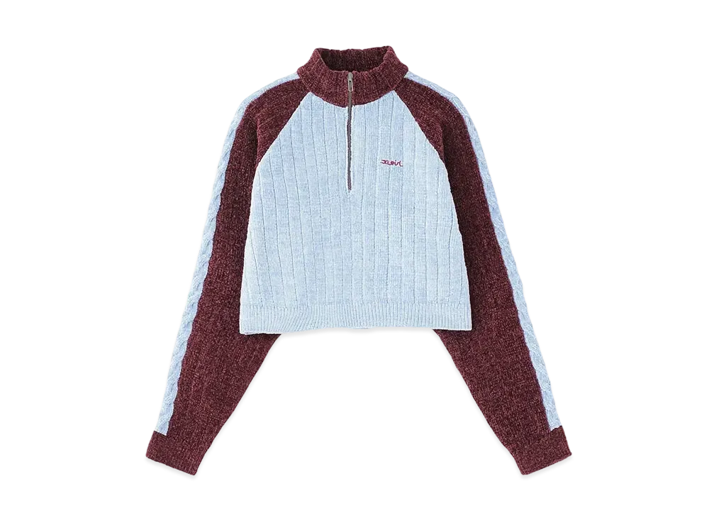 X-Girl Striped Sleeve Half Zip Knit Top "Burgundy"
