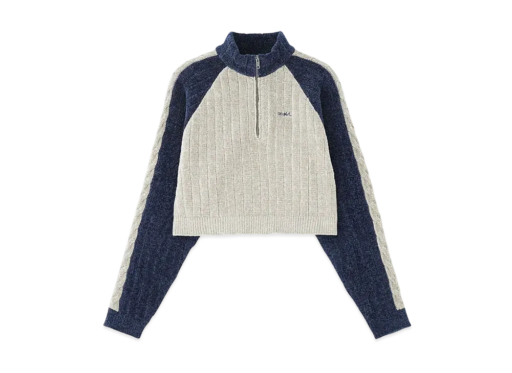 X-Girl Striped Sleeve Half Zip Knit Top "Navy"