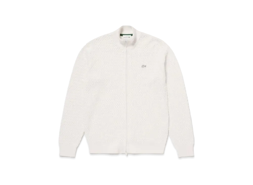 LACOSTE Basket Knit Zip Up "White"