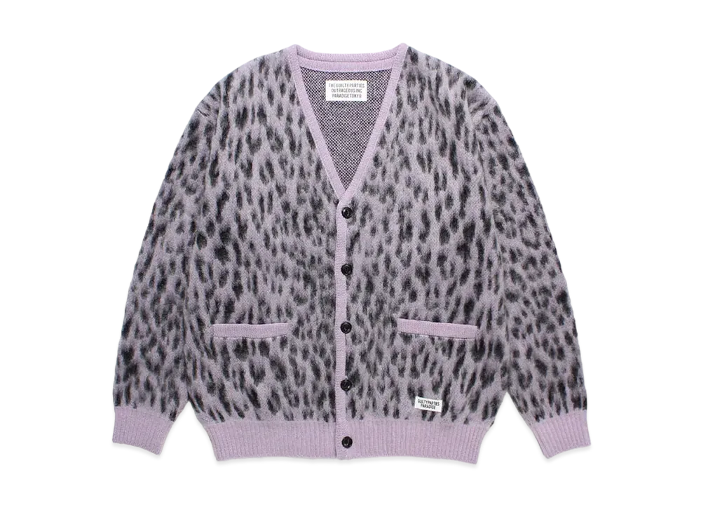 WACKO MARIA Leopard Mohair Knit Jacquard Cardigan "Light Purple"
