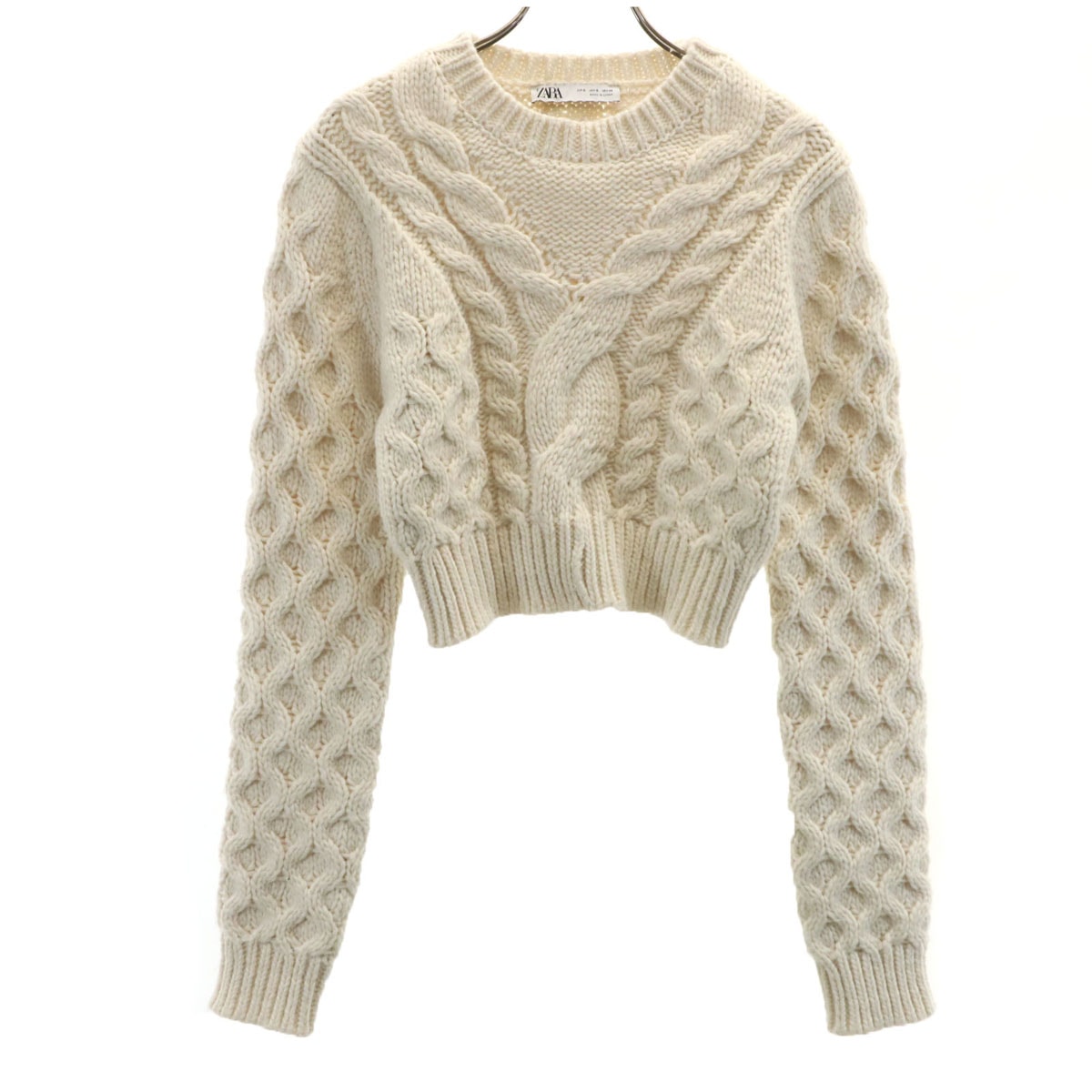 ZARA ザラ 長袖 ショート丈 セーター S アイボリー アランニット