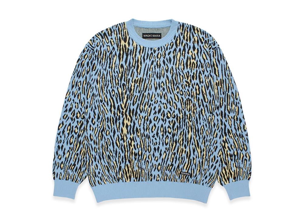 WACKO MARIA Leopard Jacquard Knit Sweater "Light Blue"