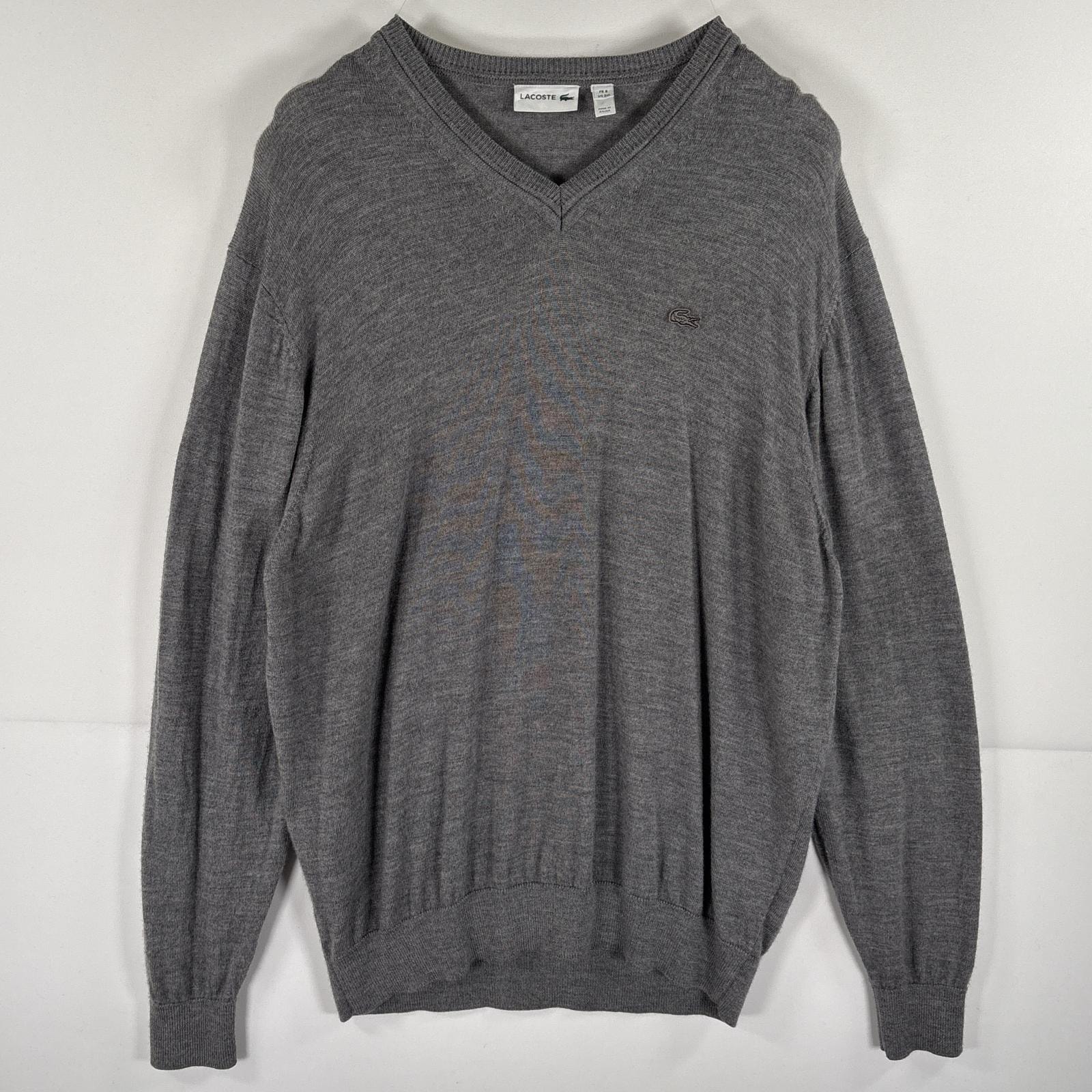古着 ラコステ LACOSTE ウールニットセーター Vネック ワンポイントロゴ 薄手 大きいサイズ 3XL ダークグレー メンズ