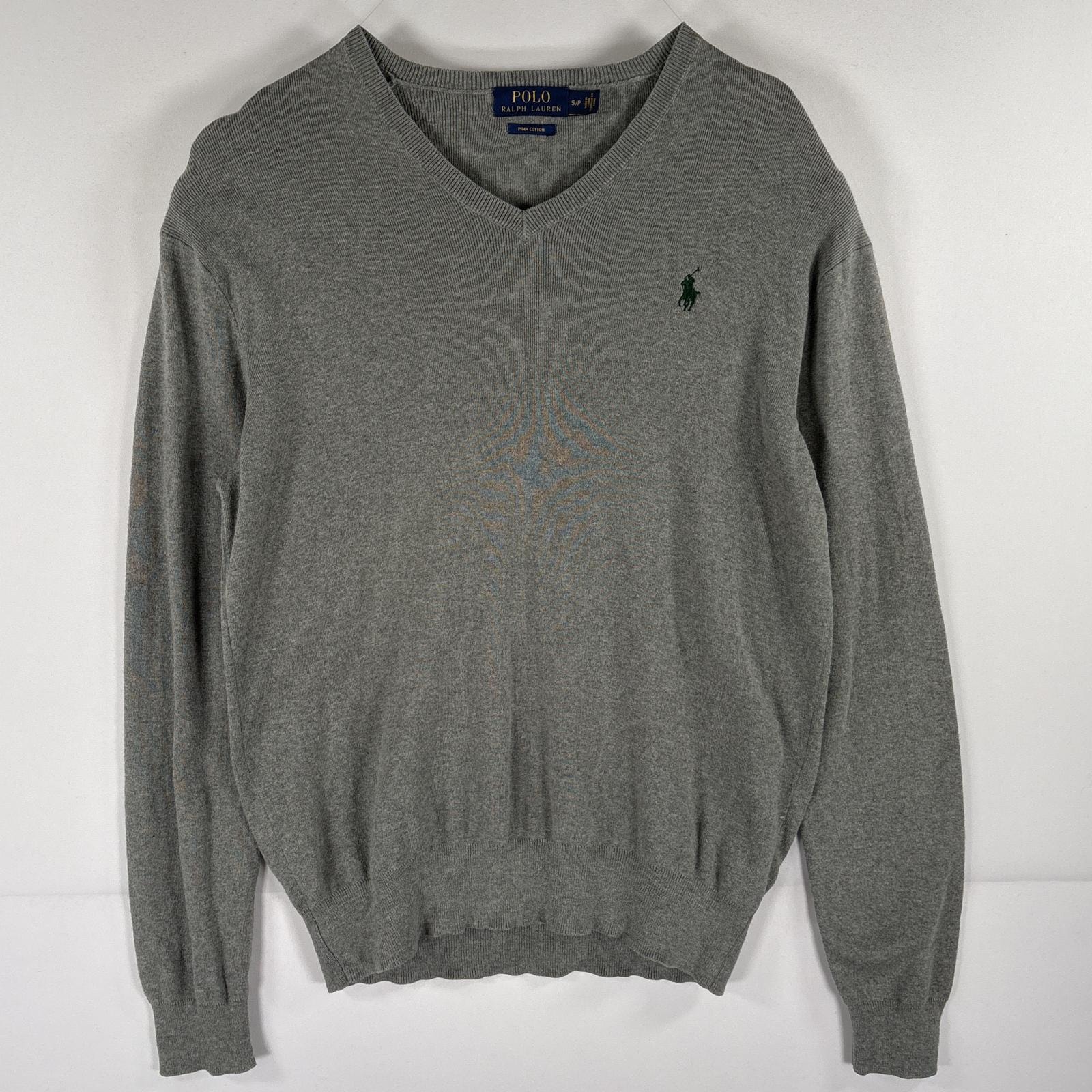 古着 ポロ・ラルフローレン POLO RALPH LAUREN コットンニットセーター Vネック ワンポイントロゴ刺繍 薄手 S グレー メンズ