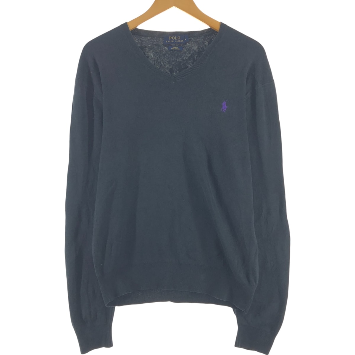 古着 ラルフローレン Ralph Lauren POLO RALPH LAUREN SLIM FIT Vネック ピマコットンニットセーター メンズL相当/eaa546636