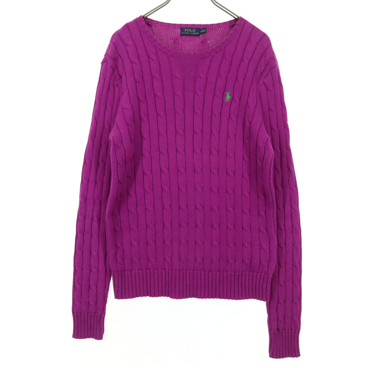 美品 POLO RALPH LAUREN ポロラルフローレン ワンポイントロゴ 長袖 ケーブル編み コットン ニット S ピンク系 フィッシャーマン
