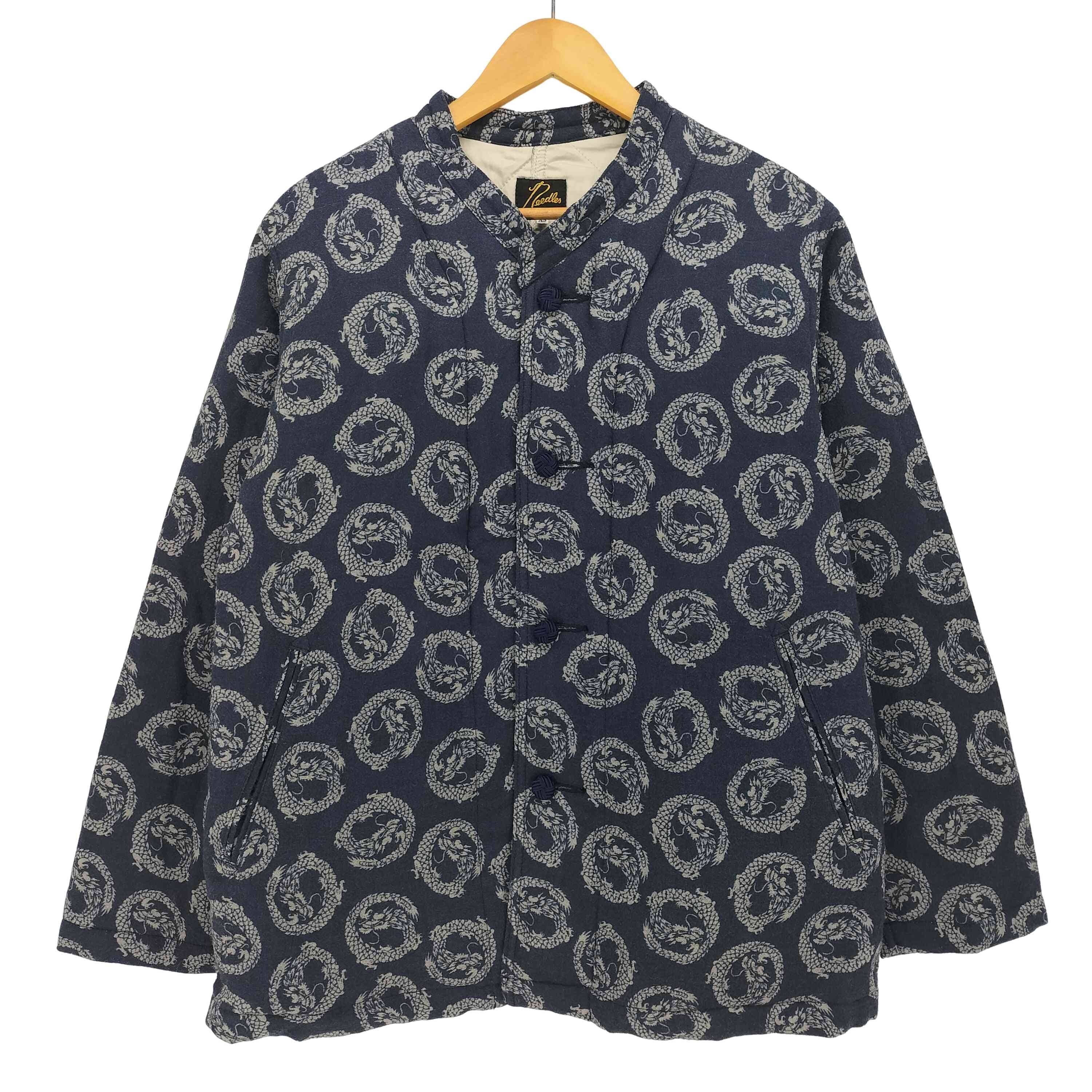 Needles ニードルズ CLASSIC SHIRT R/PE CRESCENT JQ. PU160 クラシック シャツ レーヨン ポリエステル クレセント ジャガード ロングスリーブ ネイビー 長袖 三日月模様 サイズM