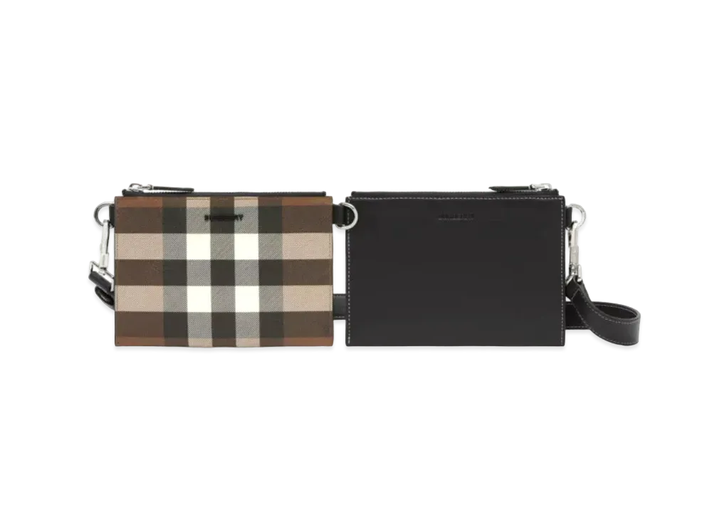 BURBERRY Check E Canvas & Leather Link Pouch Cross Body Bag "Dark Bachi Brown"