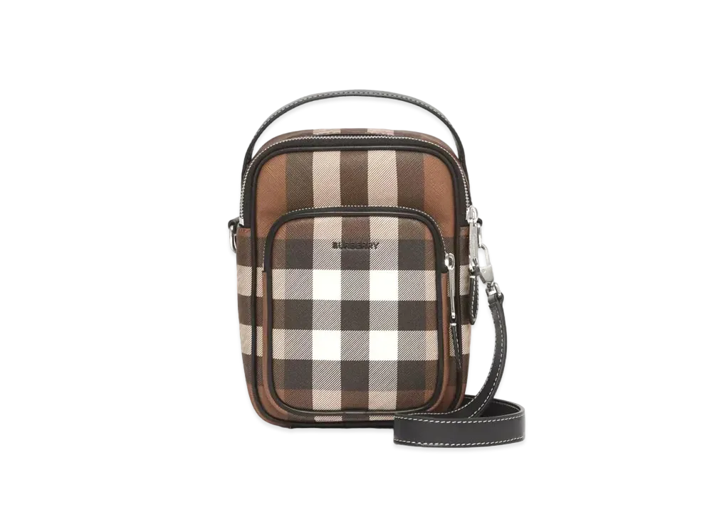 BURBERRY Check E Canvas Crossbody Bag "Dark Bachi Brown"