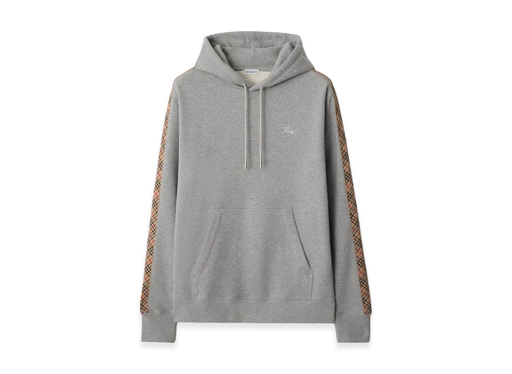 Burberry Check Trim Cotton Hoodie "Pale Grey Melange"
