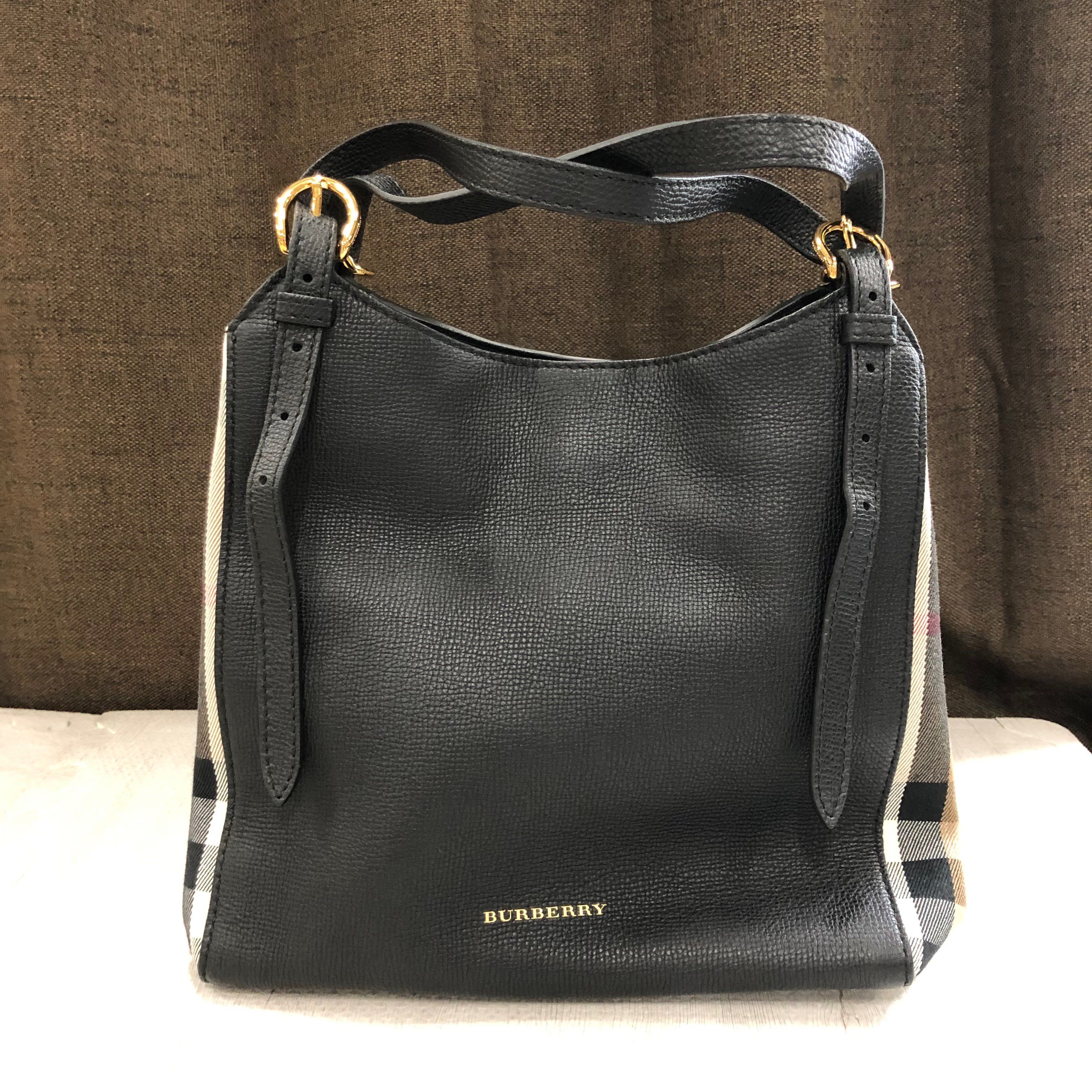 Burberry Grainy Calfskin House Check Ethan Satchel Tote "Black"