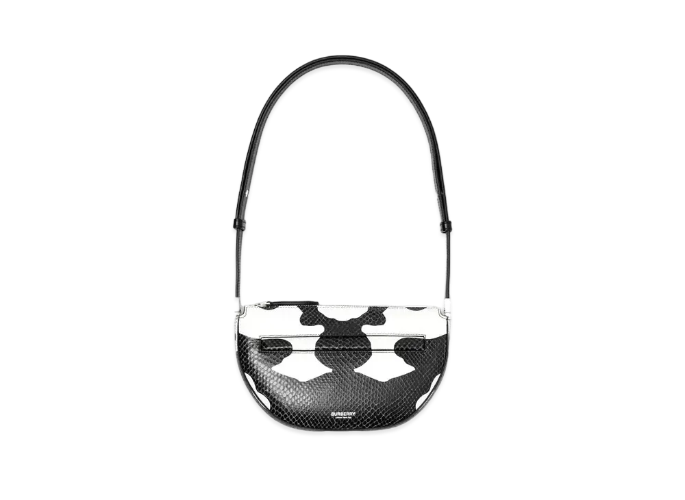 Burberry Mini Cow Print Leather Zip Olympia Bag "Black White"