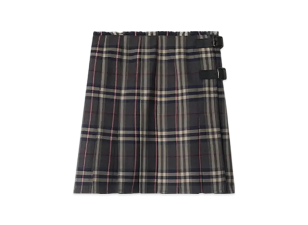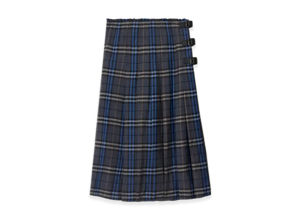 Burberry Check Wool Midi Kilt "Bright Oxford Blue/Light Granite"