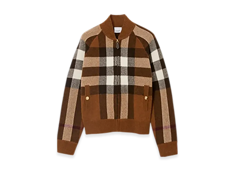 Burberry Check Wool Cashmere Bomber Jacket "Dark Birch Brown"