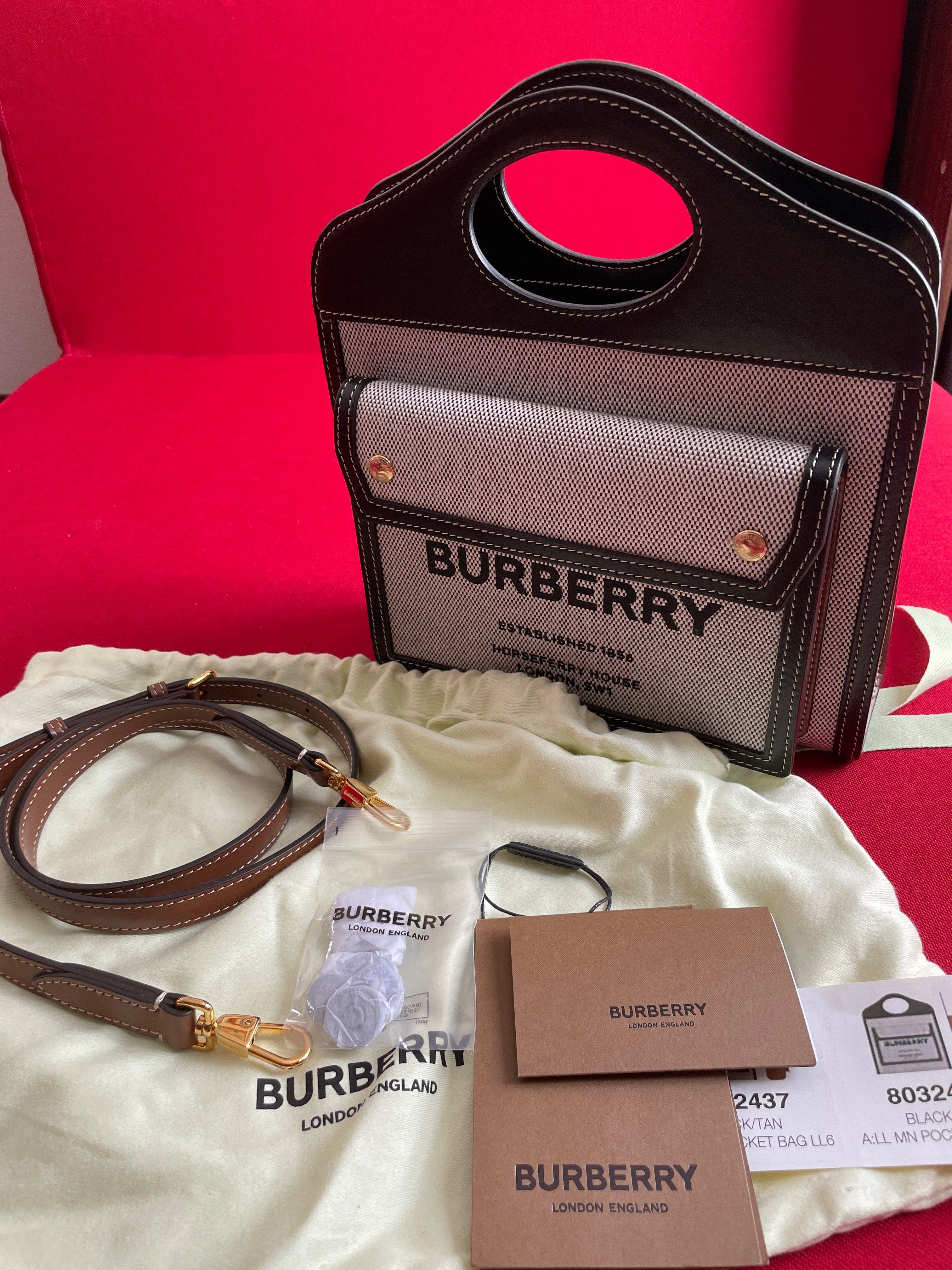 Burberry Mini Tri Tone Cotton Canvasleather Pocket Bag "Black/Tan"