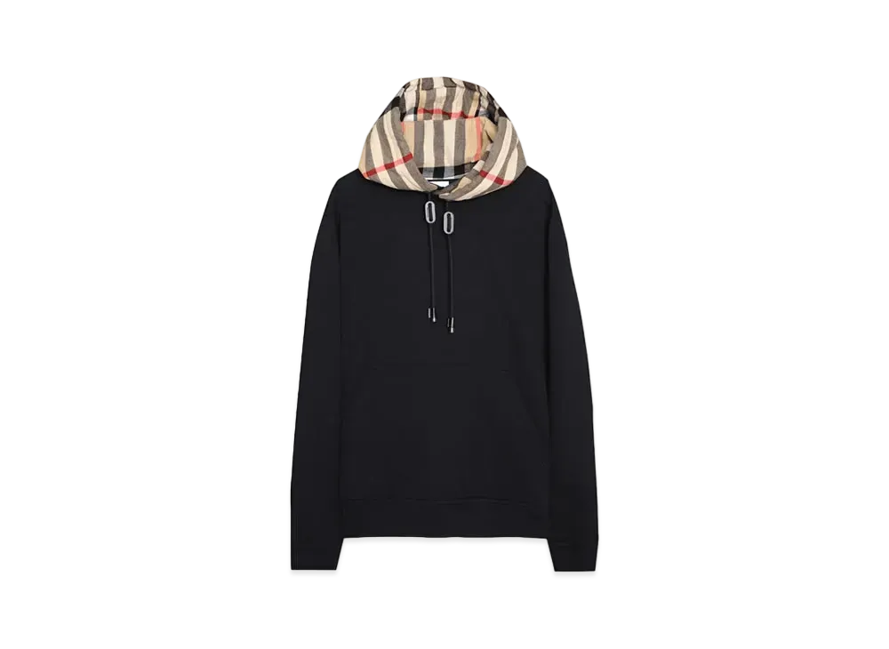 Burberry Check Hood Cotton Hoodie "Black/Archive Beige"