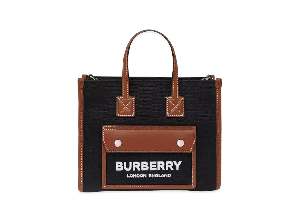 Burberry Two-Tone Canvas And Leather Mini Freya Tote "Black/Tan"