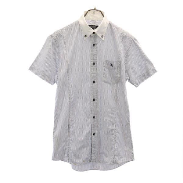 BURBERRY BLACK LABEL バーバリーブラックレーベル 三陽商会 日本製 ストライプ柄 半袖 ボタンダウンシャツ 2 白系