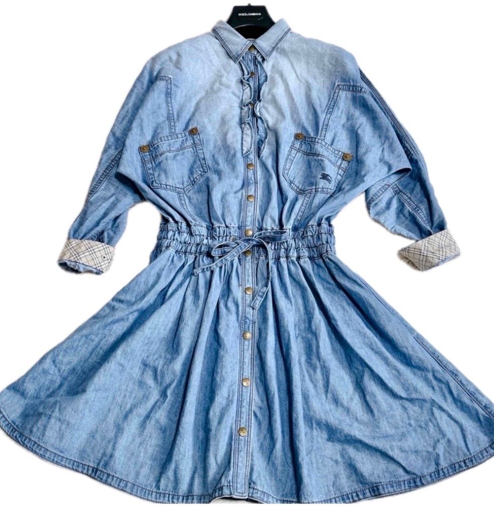 バーバリーブルーレーベル ホースロゴ 金ボタン デニム ワンピース M