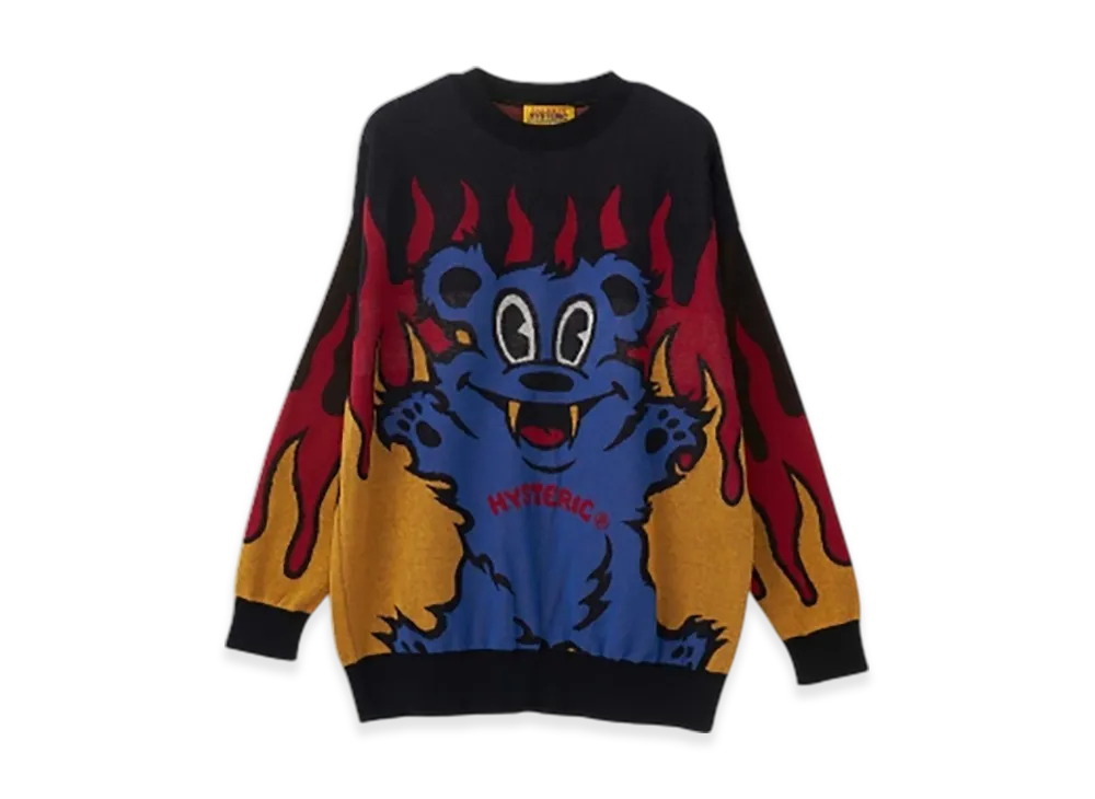 HYSTERIC GLAMOUR Fire Bear Jacquard Sweater "Black"