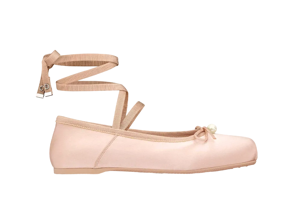 Dior D-Joy Ballet Flat Satin and Grosgrain "Beige Pink"