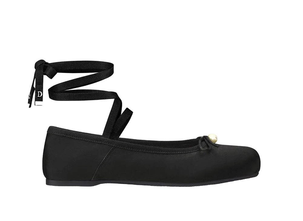 Dior D-Joy Ballet Flat Satin and Grosgrain "Black"