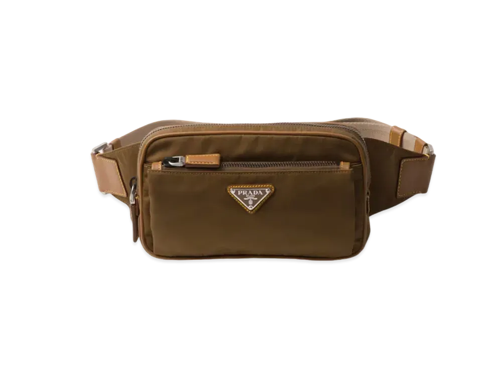 PRADA Re-Nylon and Suede Belt Bag "Khaki Green/Dark Brown"