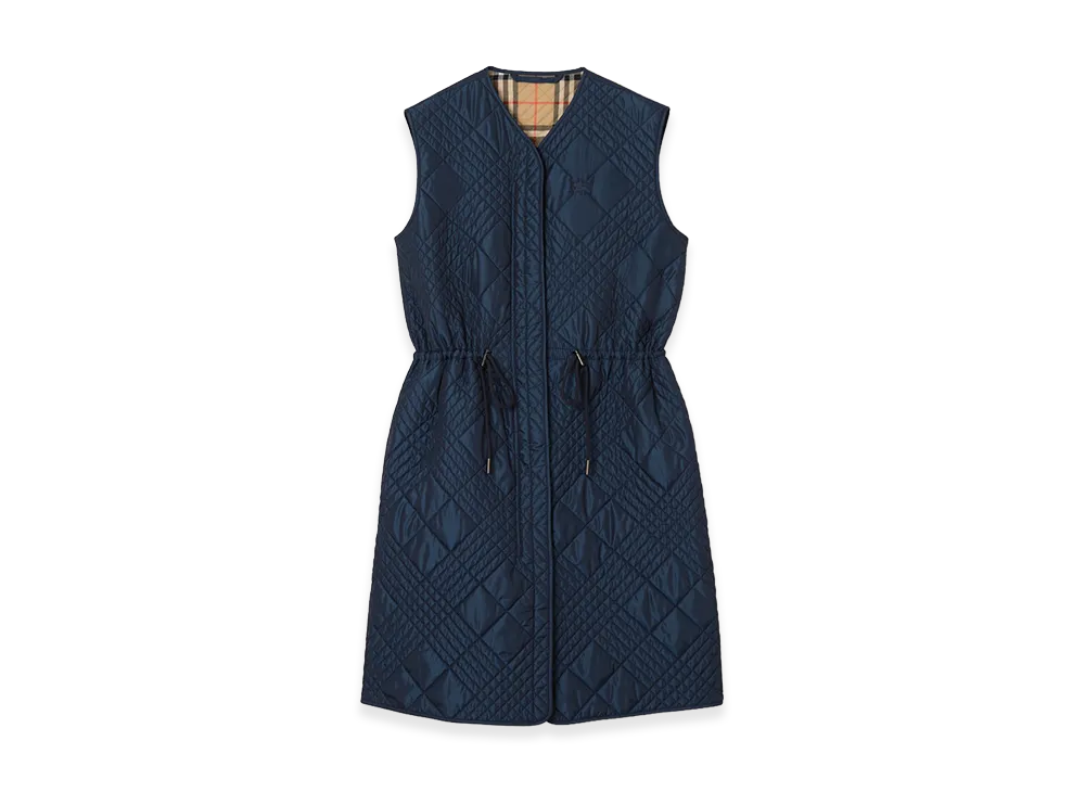 Burberry Women's Micro Check Stitch Nylon Blend Gilet "Silhouette Blue"