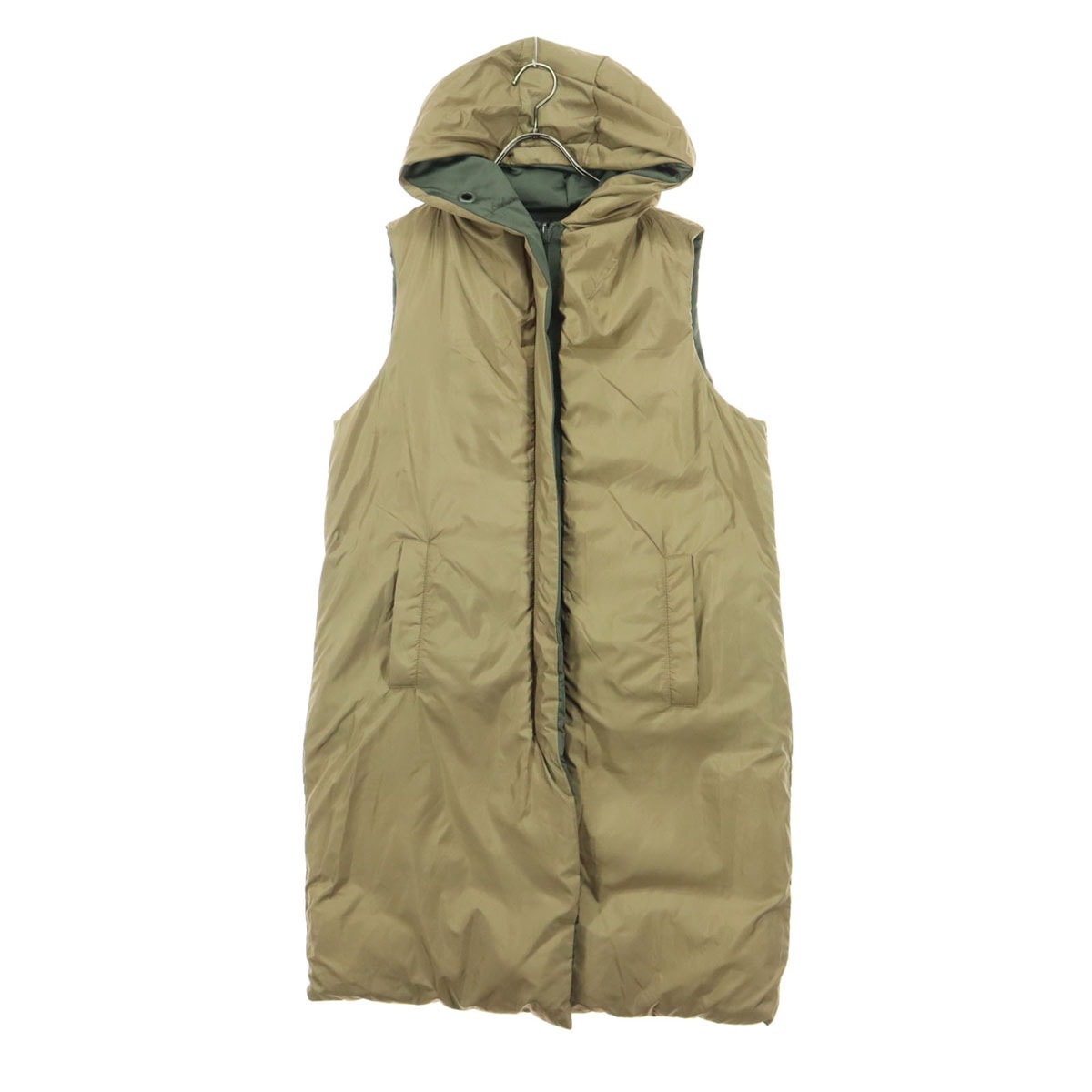 美品 ZARA ザラ フード付 リバーシブル ロング 中綿ベスト M ブラウン カーキ