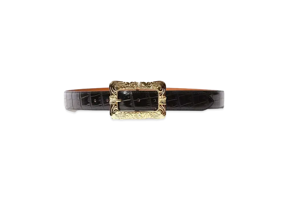 Needles Papillon Square Buckle Belt Crocodile Embossed Leather "Black"