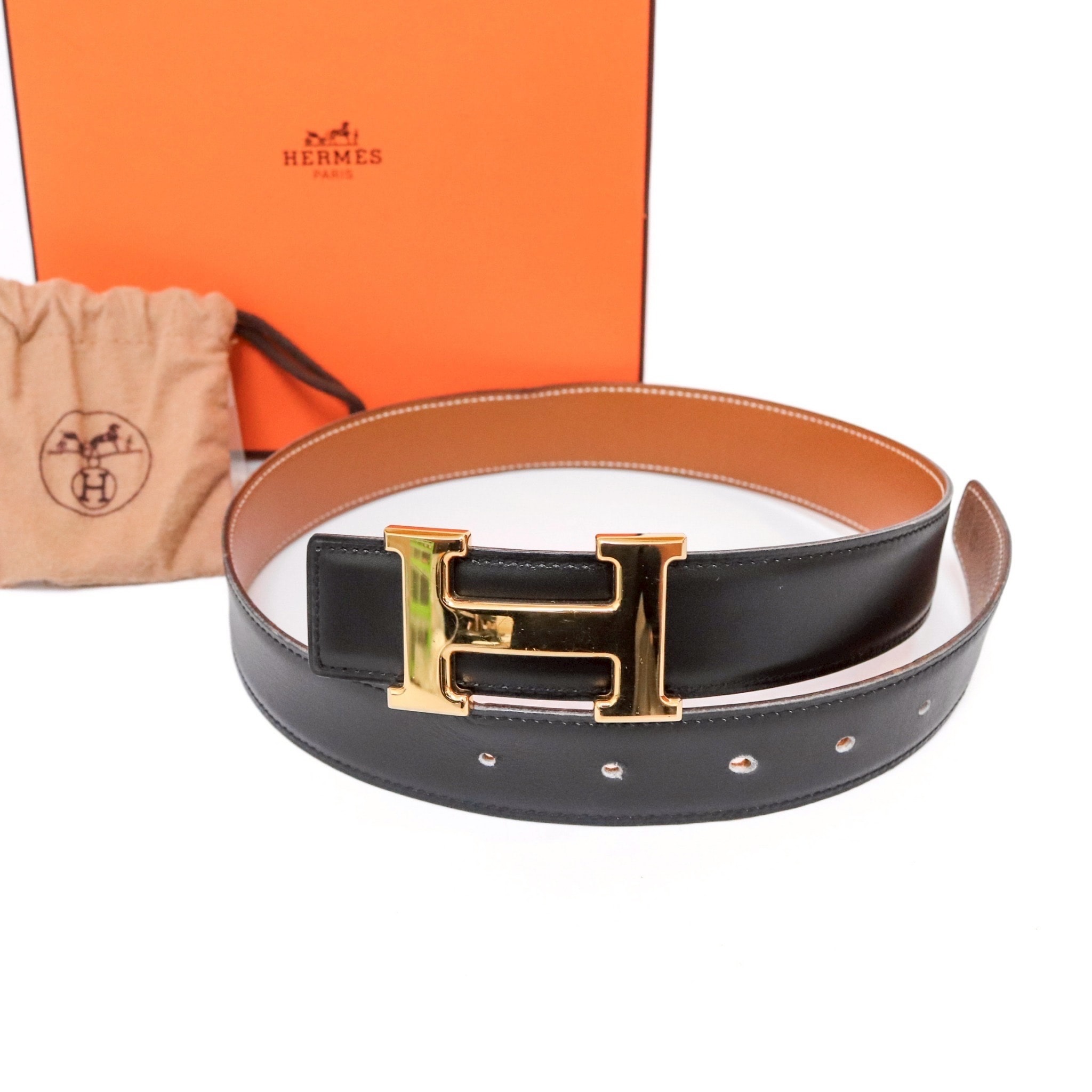 【6db2164】エルメス ベルト コンスタンスベルト ボックスカーフ ブラック ゴールド ゴールド金具 〇Z刻印【中古】レディース