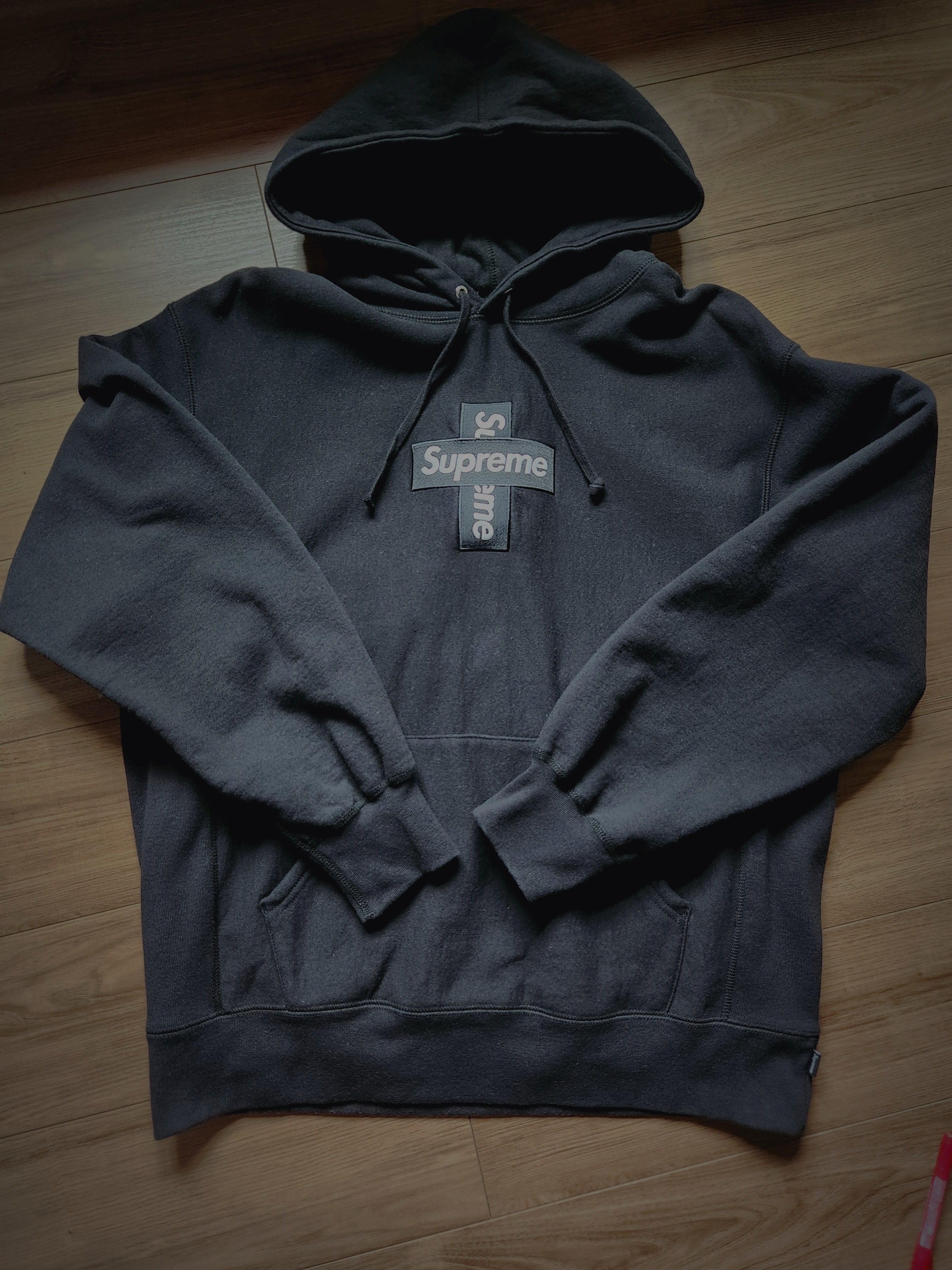 Supreme Cross Box Logo Hooded Sweatshirt "Navy"