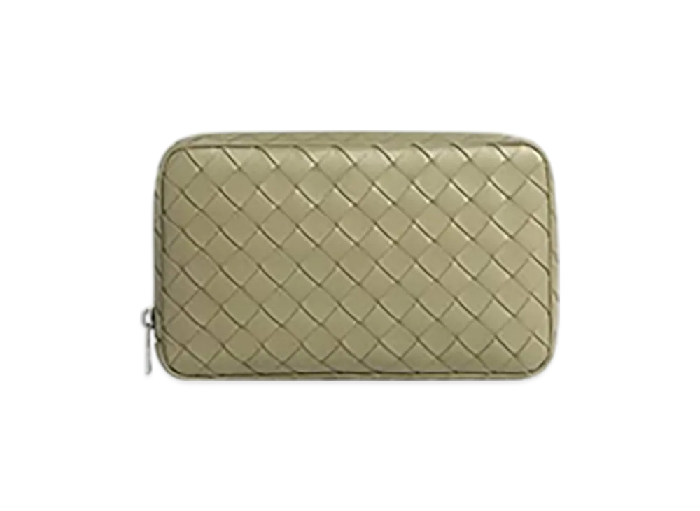 Bottega Veneta Intrecciato Half Zipped Pouch "Fondant/Matcha"
