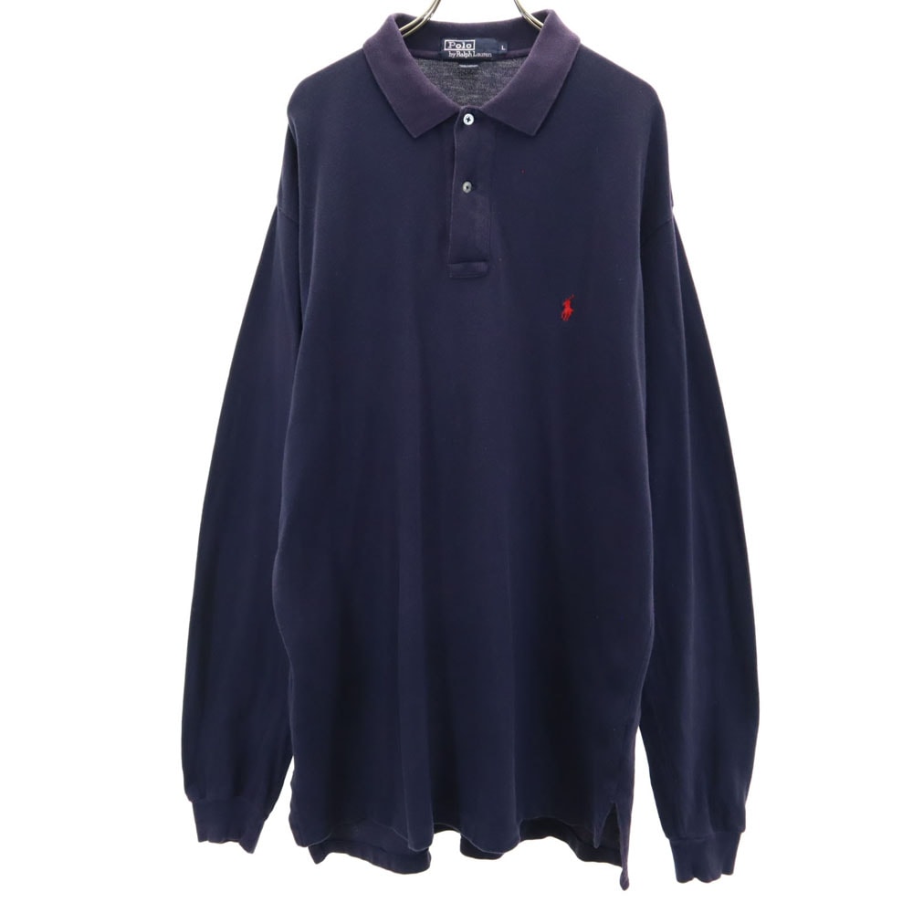Polo by Ralph Lauren ポロバイラルフローレン 長袖 ポロ ワンピース L ネイビー 鹿の子
