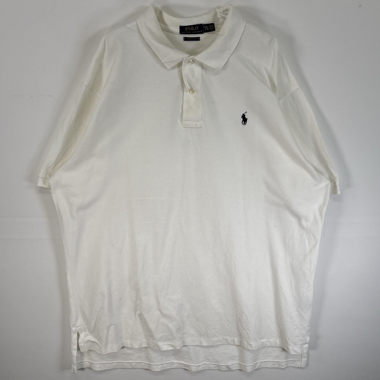 古着 90's/90年代 ポロバイラルフローレン Polo by Ralph Lauren 鹿の子 半袖 ポロシャツ ロゴ 刺繍 大きいサイズ 2ボタン 3XLT TALL ホワイト 無地 メンズ