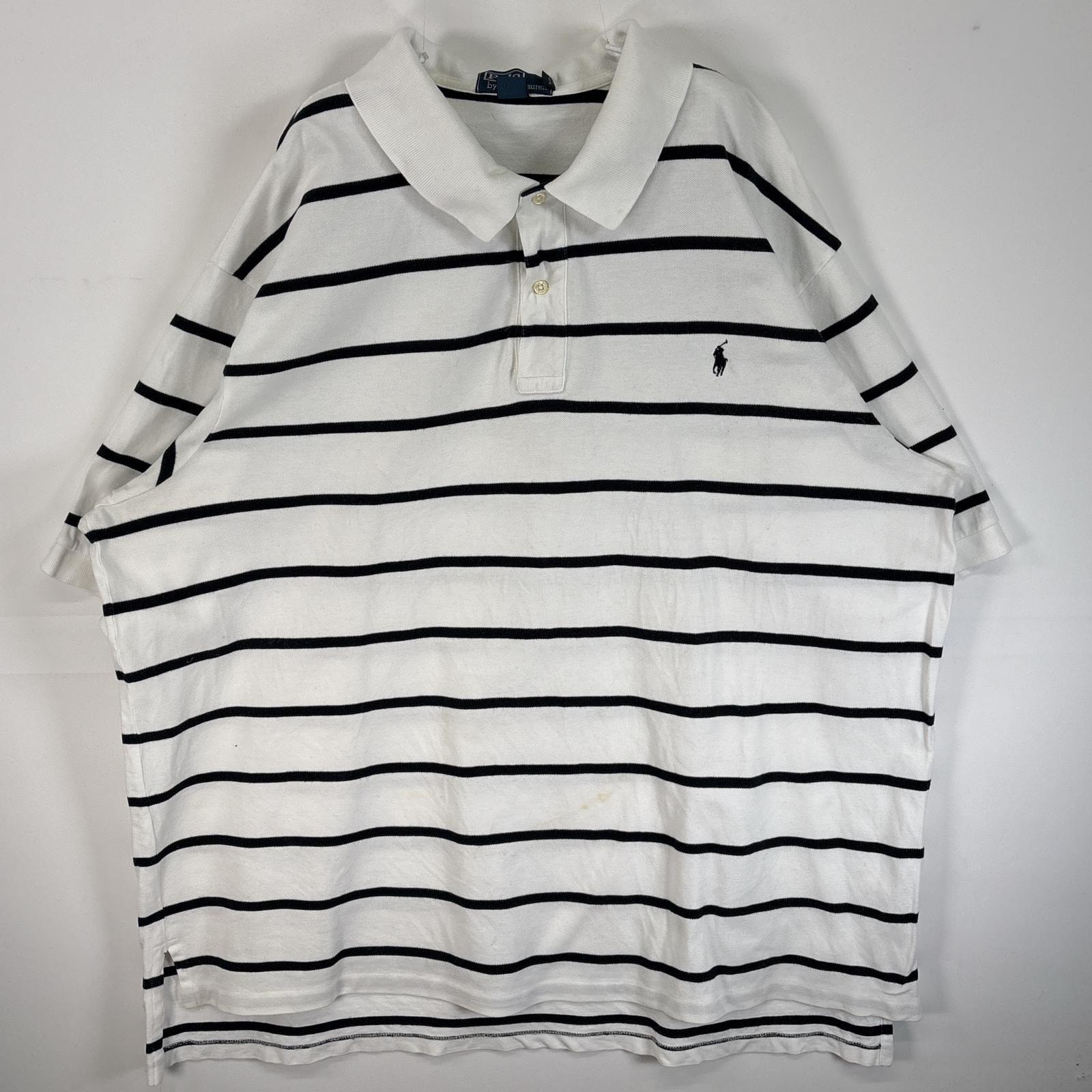 古着 90's/90年代 ポロバイラルフローレン Polo by Ralph Lauren 鹿の子 半袖 ポロシャツ ロゴ 刺繍 大きいサイズ 2ボタン 4XB BIG ホワイト系 ボーダー メンズ