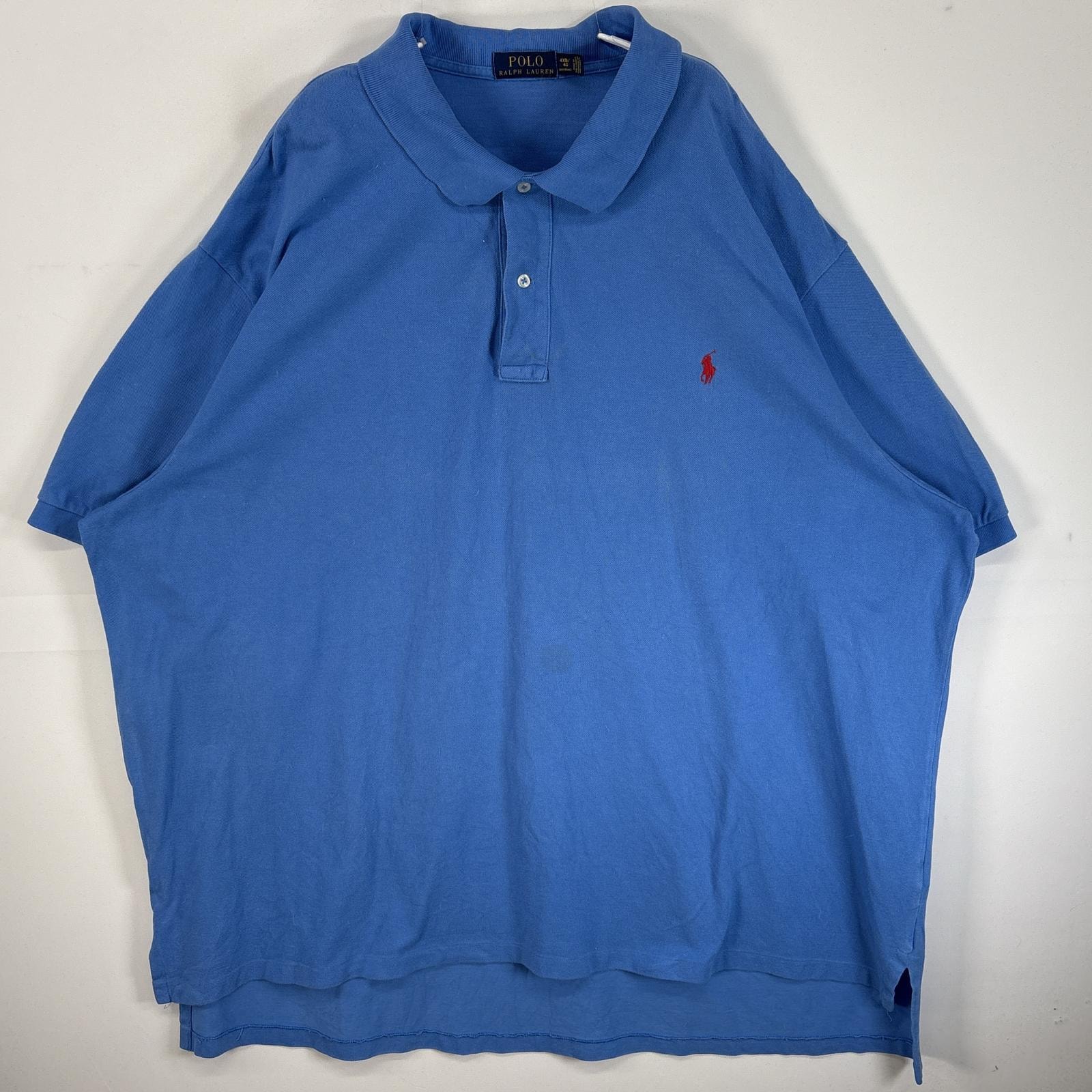 古着 ポロ・ラルフローレン POLO RALPH LAUREN 鹿の子 半袖 ポロシャツ ロゴ 刺繍 大きいサイズ 2ボタン 4XB ブルー 無地 メンズ