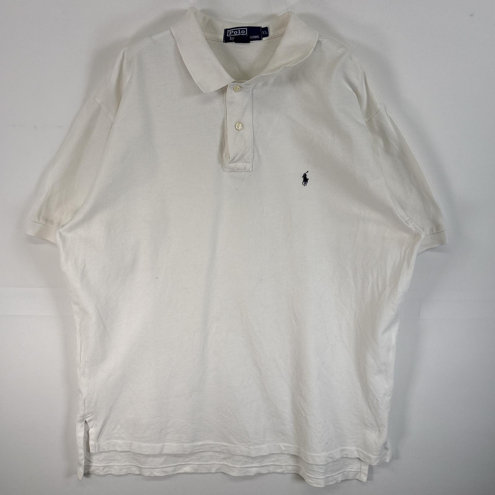 古着 90's/90年代 ポロバイラルフローレン Polo by Ralph Lauren 鹿の子 半袖 ポロシャツ ロゴ 刺繍 2ボタン 大きいサイズ XL ホワイト 無地 メンズ
