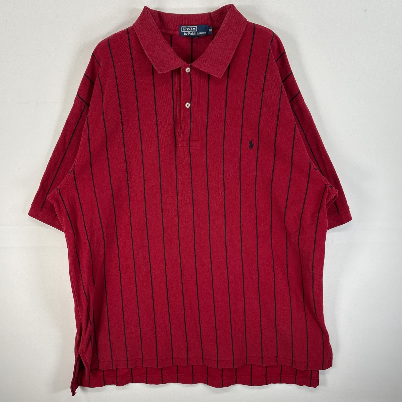 古着 90's/90年代 ポロバイラルフローレン Polo by Ralph Lauren 鹿の子 半袖 ポロシャツ ワンポイント ロゴ 刺繍 大きいサイズ 厚手 2XLT レッド系 ストライプ メンズ