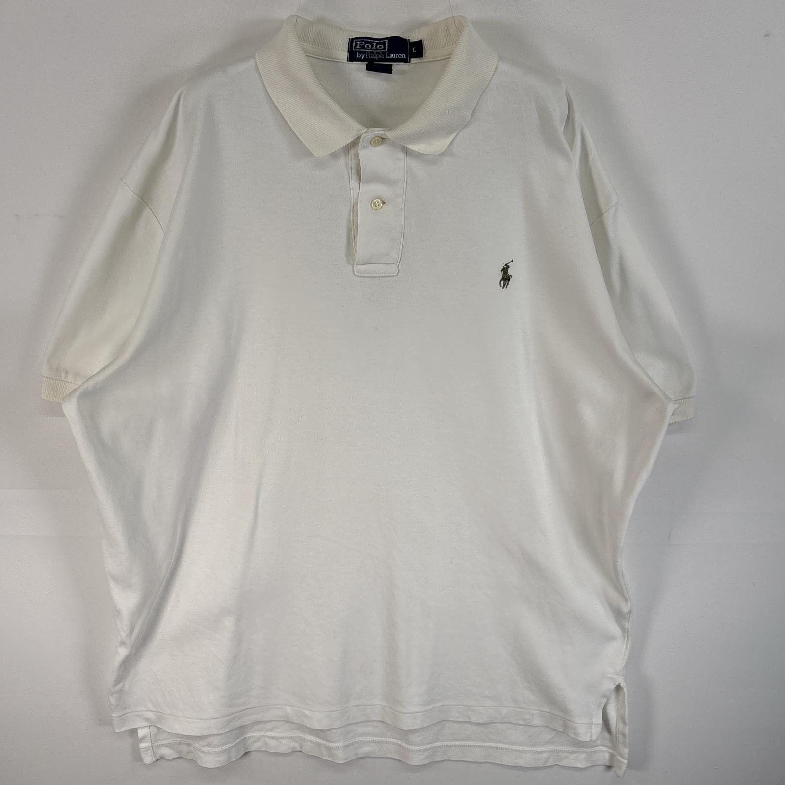 古着 90's/90年代 ポロバイラルフローレン Polo by Ralph Lauren 半袖 ポロシャツ ロゴ 刺繍 2ボタン L ホワイト 無地 メンズ