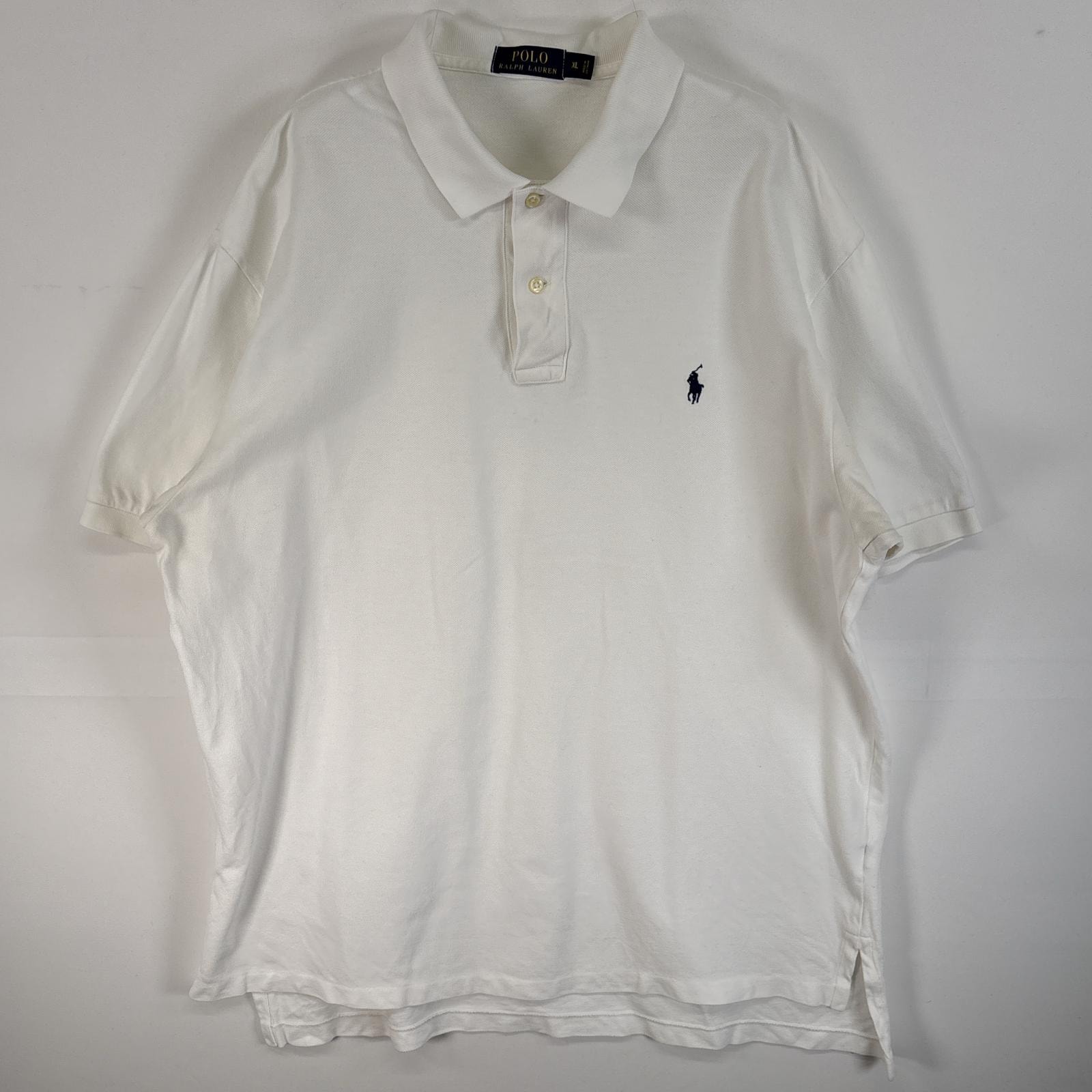 古着 ポロ・ラルフローレン POLO RALPH LAUREN 鹿の子 半袖 ポロシャツ ロゴ 刺繍 大きいサイズ 2ボタン XL ホワイト 無地 メンズ