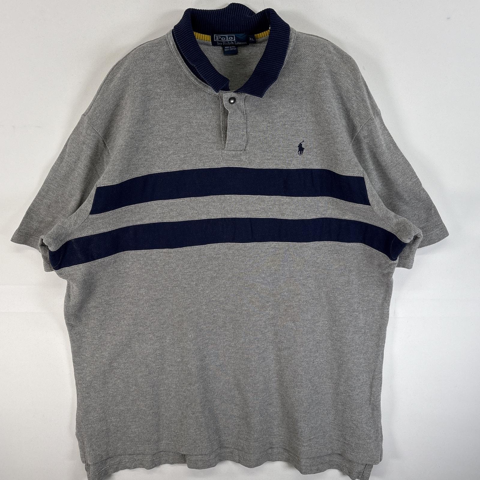 古着 90's/90年代 ポロバイラルフローレン Polo by Ralph Lauren 鹿の子 半袖 ポロシャツ ワンポイント ロゴ 刺繍 スナップボタン 首切替 XL グレー系 ボーダー メンズ