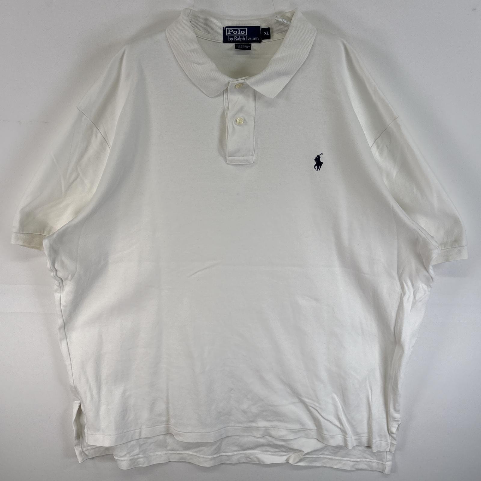 古着 90's/90年代 ポロバイラルフローレン Polo by Ralph Lauren 半袖 ポロシャツ ワンポイント ロゴ 刺繍 大きいサイズ 2ボタン XL ホワイト 無地 メンズ